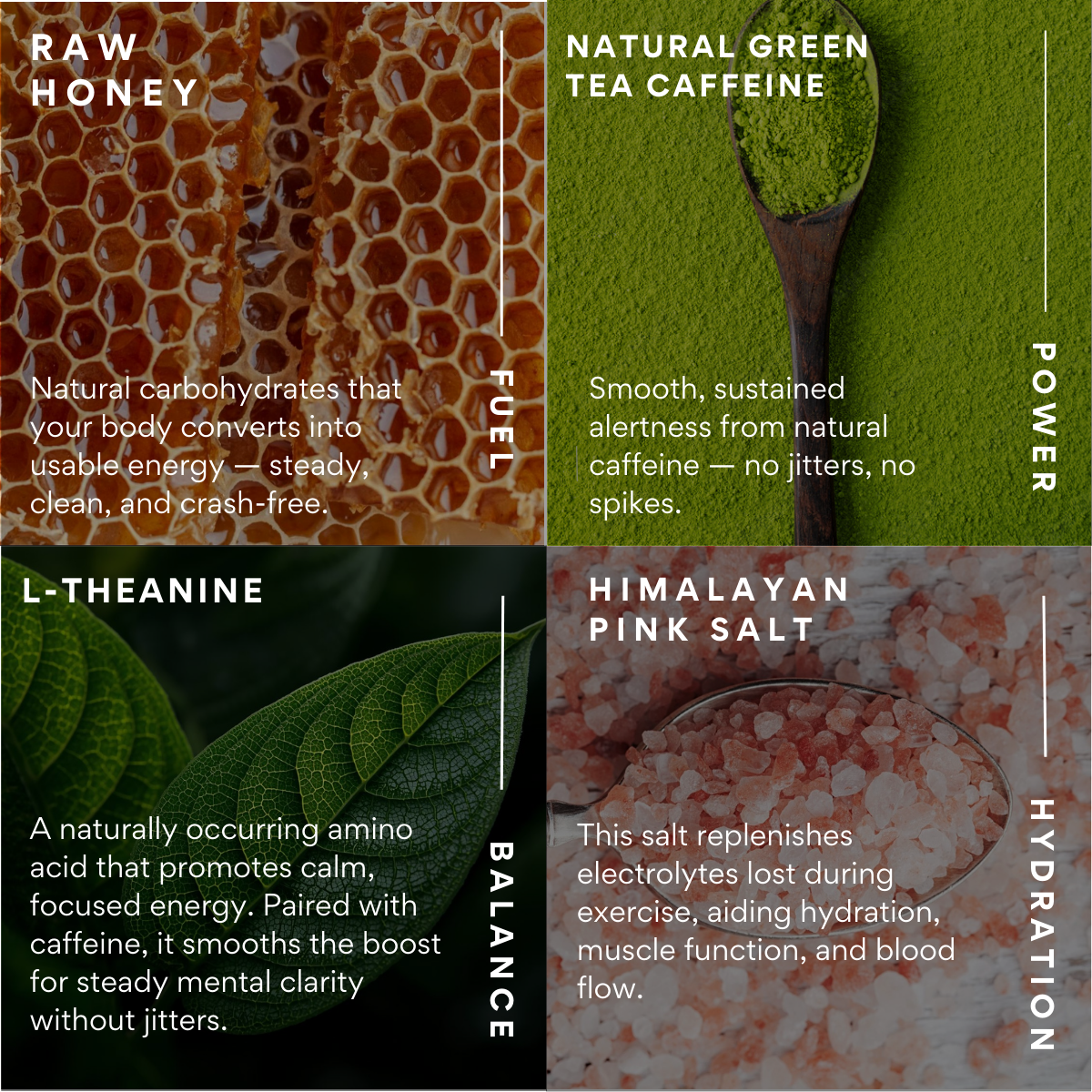 CRAFTED WITH PREMIUM, ALL-NATURAL INGREDIENTS AND BACKED BY SCIENCE FOR CLEAN, EFFECTIVE PERFORMANCE FUEL.