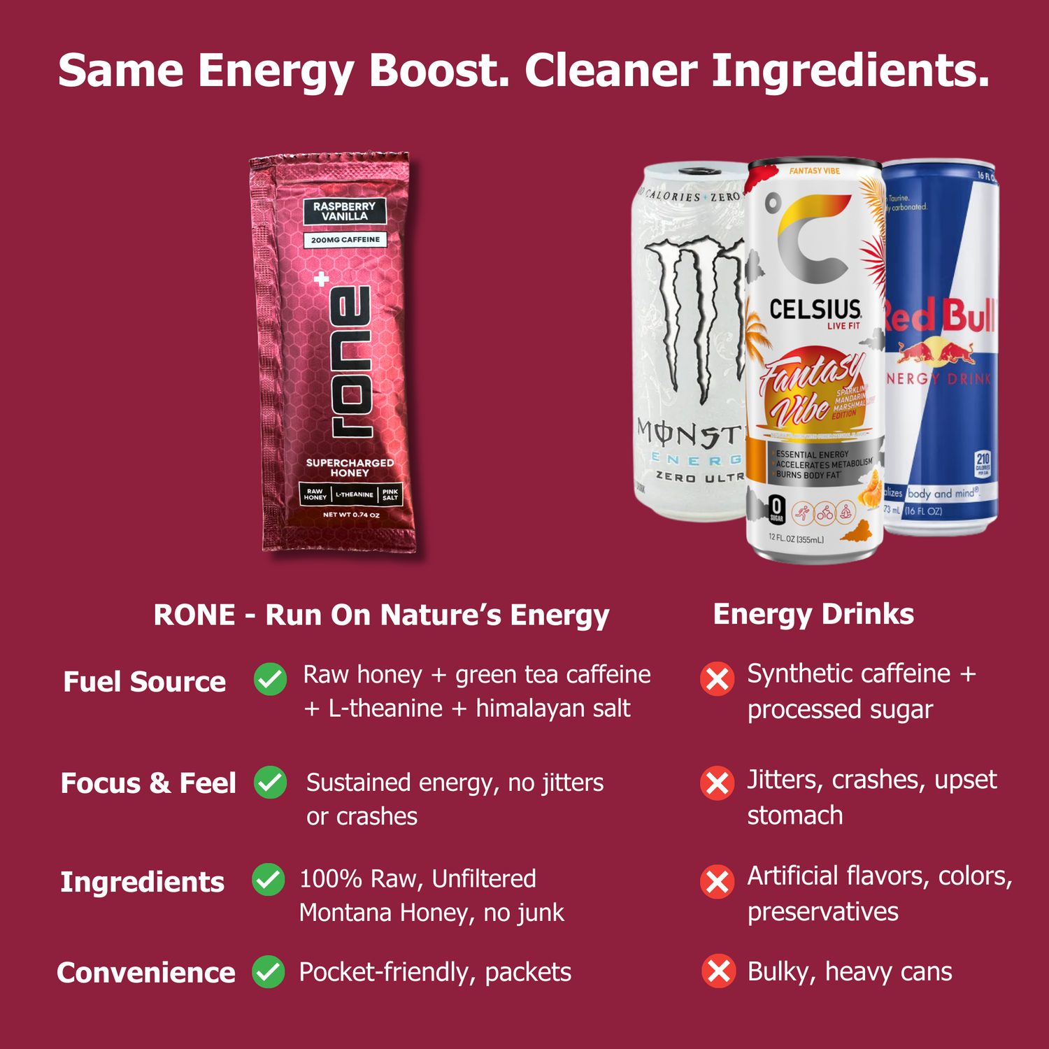 THOUSANDS RELY ON SUPERCHARGED HONEY™ FOR CLEAN, CONSISTENT ENERGY WITH NO ARTIFICIAL JUNK.